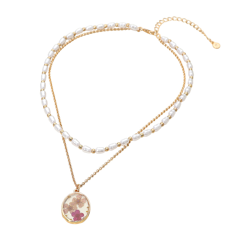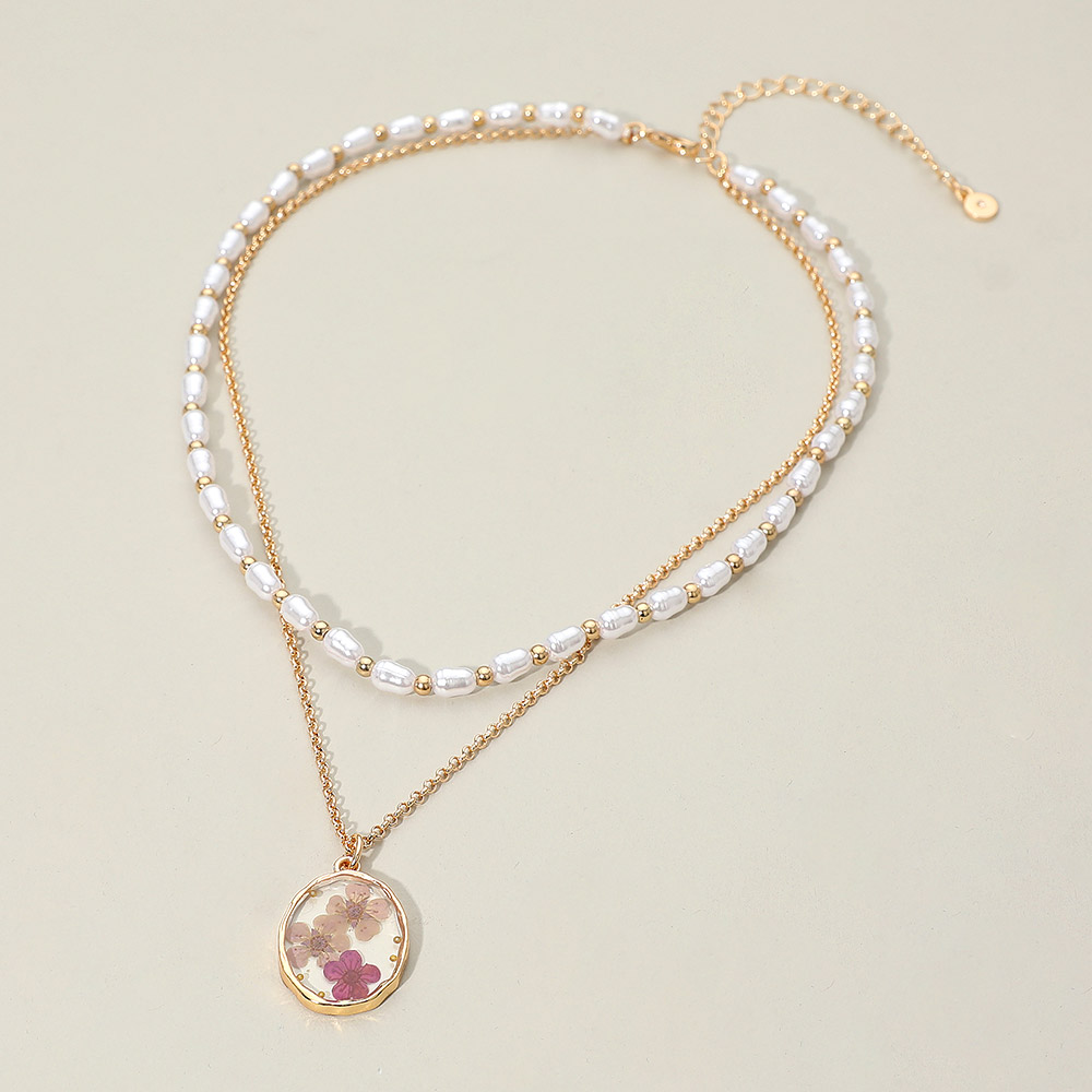 Floral Resin Pendant Pearl Metal Chain Layered Necklace Floral Resin Pendant Pearl Metal Chain Layered Necklace Floral Resin Pendant Pearl Metal Chain Layered Necklace