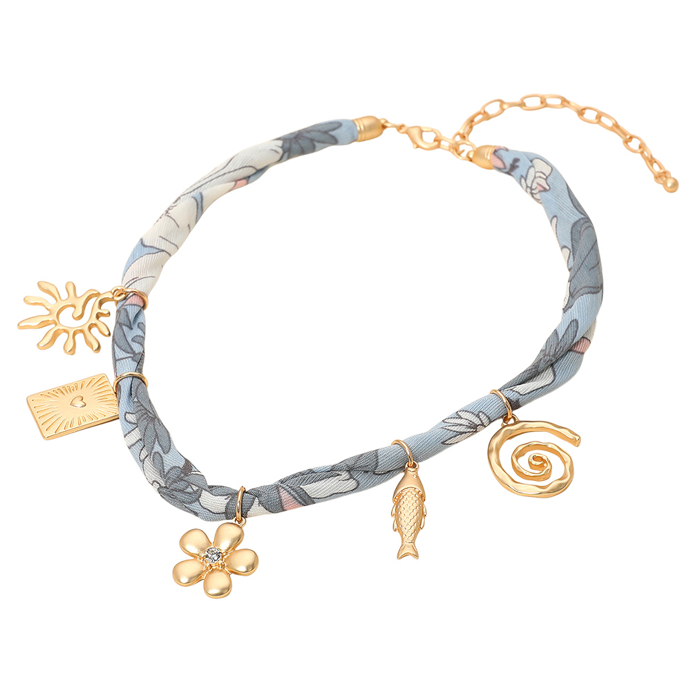 Details • Necklace Size : 14.5" + 3.5" L • Decor Size : 1" L • Print may vary • Elevate any outfit with this stylish fabric necklace featuring a collection of symbolic charms, from nature-inspired motifs to whimsical shapes. Its lightweight, adjustable design brings a unique, artistic touch, making it a versatile accessory for everyday wear or special occasions. • Lead and Nickel Compliant