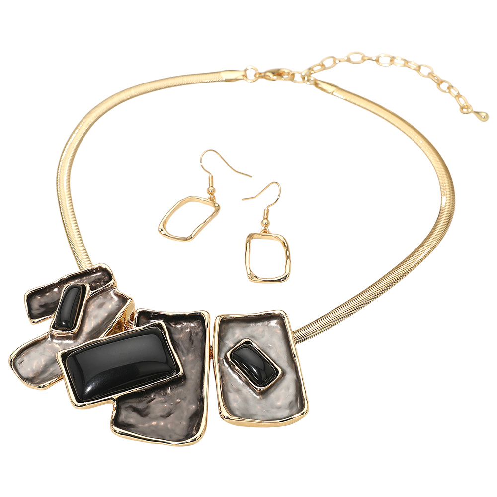 • Stylish jewelry set featuring a bold geometric necklace with matching earrings, designed in an artistic modern style. Perfect for parties, evening wear, or everyday elegance. This contemporary set adds sophistication and a fashion-forward edge to any outfit.