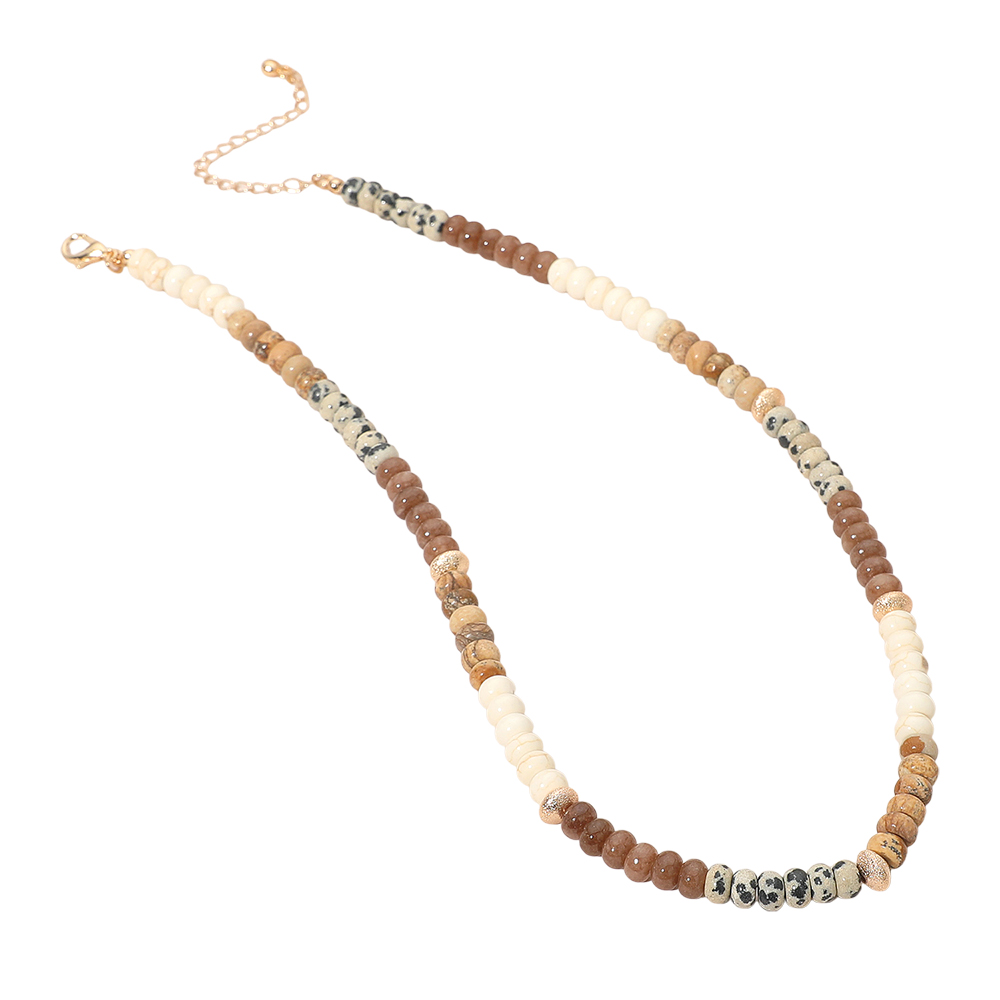 Gold Accent Spacer Marbled Resin Beaded Necklace