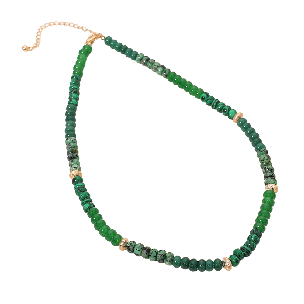 • Elegant beaded necklace featuring round polished beads and gold accent spacers for a refined layered look. Designed for versatile styling, this statement necklace adds sophistication to casual or formal outfits, making it a perfect accessory for any occasion or season.
