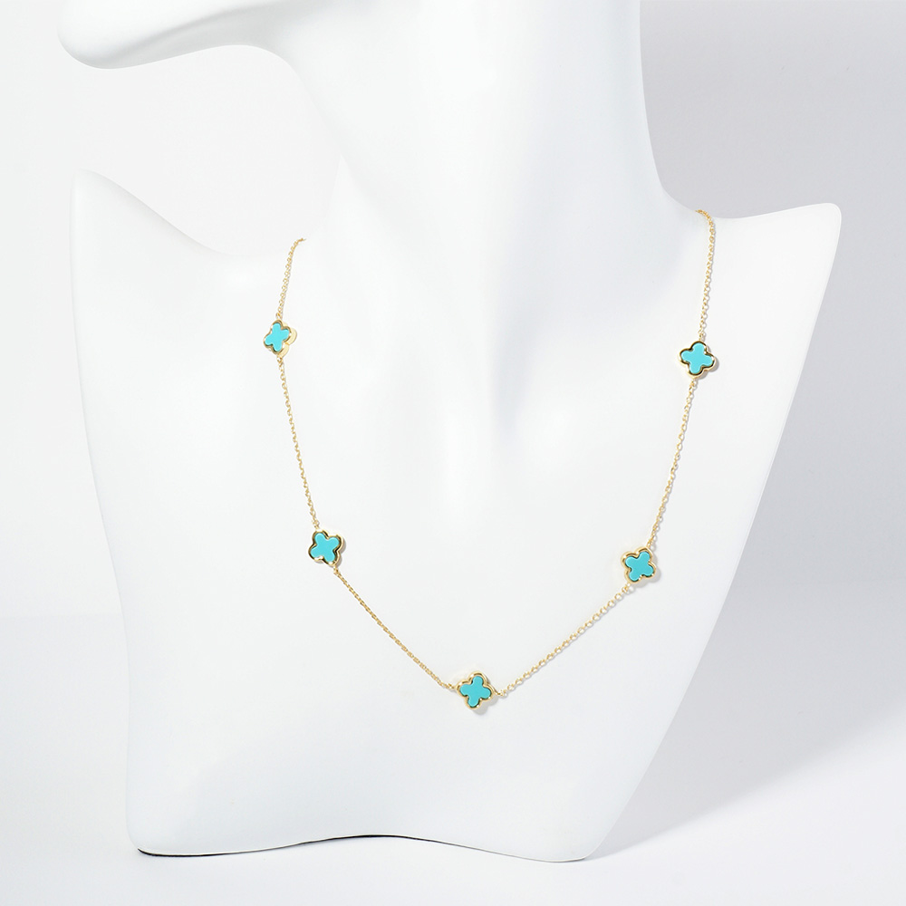 Gold Dipped Natural Stone Quatrefoil Station Necklace