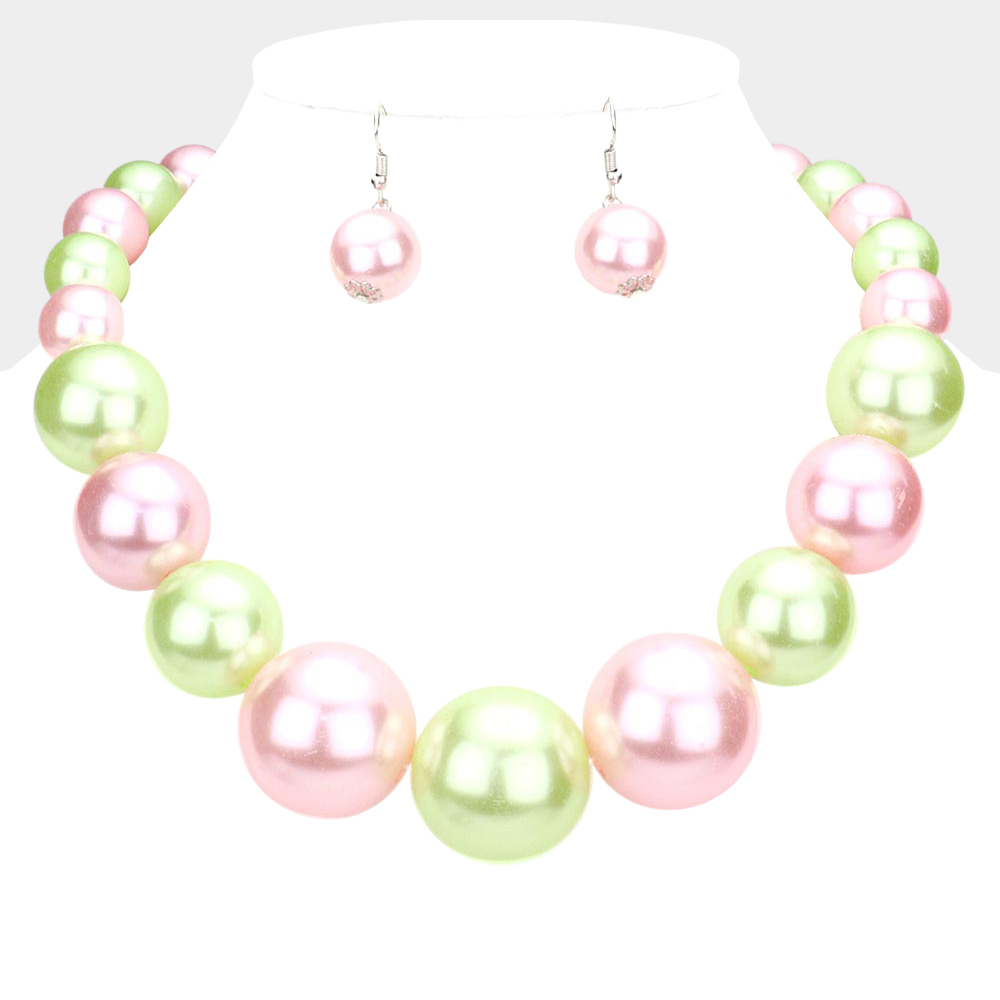 • Elegant graduated bead necklace paired with matching drop earrings for a coordinated, polished look. Designed to create visual balance and timeless appeal, this jewelry set is ideal for statement styling, special occasions, and boutique collections seeking classic silhouettes with versatile, easy-to-wear elegance.