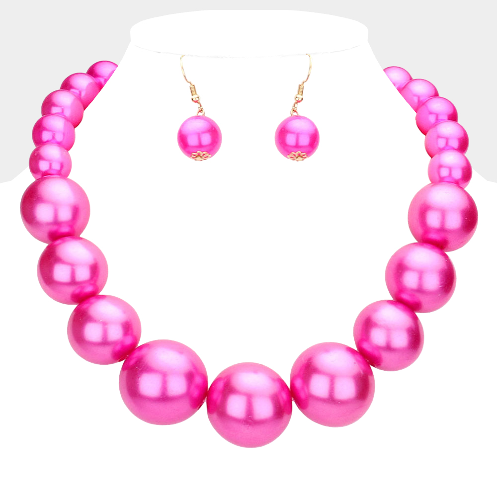 • Elegant graduated bead necklace paired with matching drop earrings for a coordinated, polished look. Designed to create visual balance and timeless appeal, this jewelry set is ideal for statement styling, special occasions, and boutique collections seeking classic silhouettes with versatile, easy-to-wear elegance.