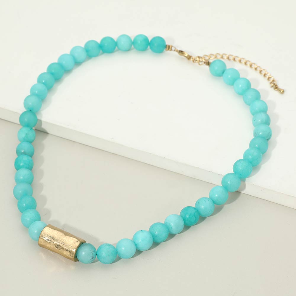• This classic beaded accent necklace features evenly spaced round beads with a sleek focal detail for a clean, modern look. Designed for effortless styling, it layers easily with other necklaces or stands alone as a simple statement. Ideal for boutiques seeking versatile accessories that transition seamlessly from casual wear to polished outfits while offering timeless appeal and everyday wearability.