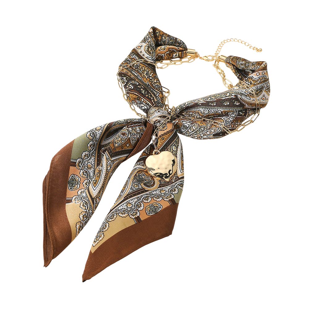 • This chain detail scarf necklace blends a soft draped scarf with a linked accent and heart charm for a refined statement look. Designed to wear as a necklace, it adds effortless polish to casual and dressy outfits, making it a versatile accessory for everyday styling and elevated fashion collections.