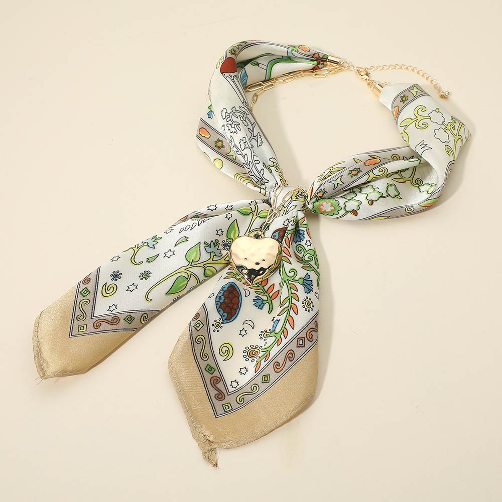 • This chain detail scarf necklace blends a soft draped scarf with a linked accent and heart charm for a refined statement look. Designed to wear as a necklace, it adds effortless polish to casual and dressy outfits, making it a versatile accessory for everyday styling and elevated fashion collections.