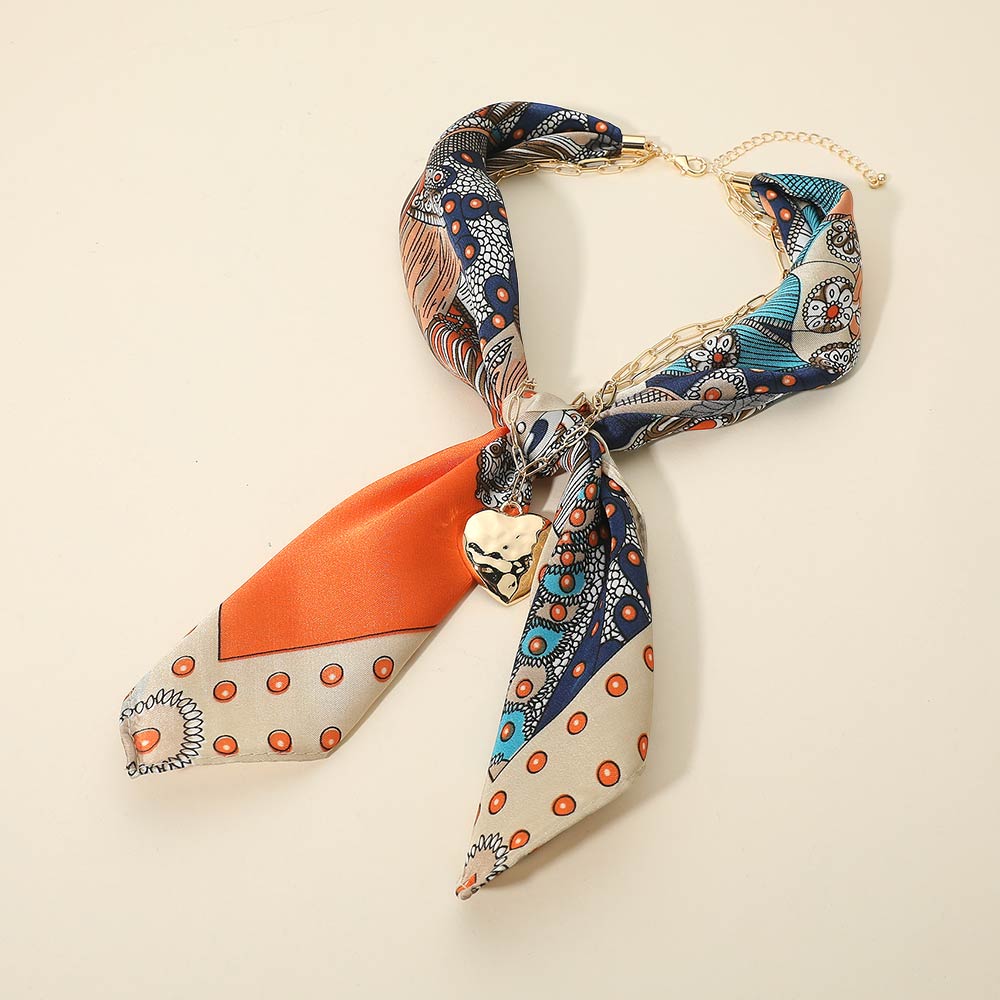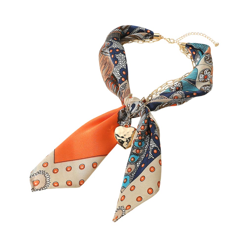 • This chain detail scarf necklace blends a soft draped scarf with a linked accent and heart charm for a refined statement look. Designed to wear as a necklace, it adds effortless polish to casual and dressy outfits, making it a versatile accessory for everyday styling and elevated fashion collections.