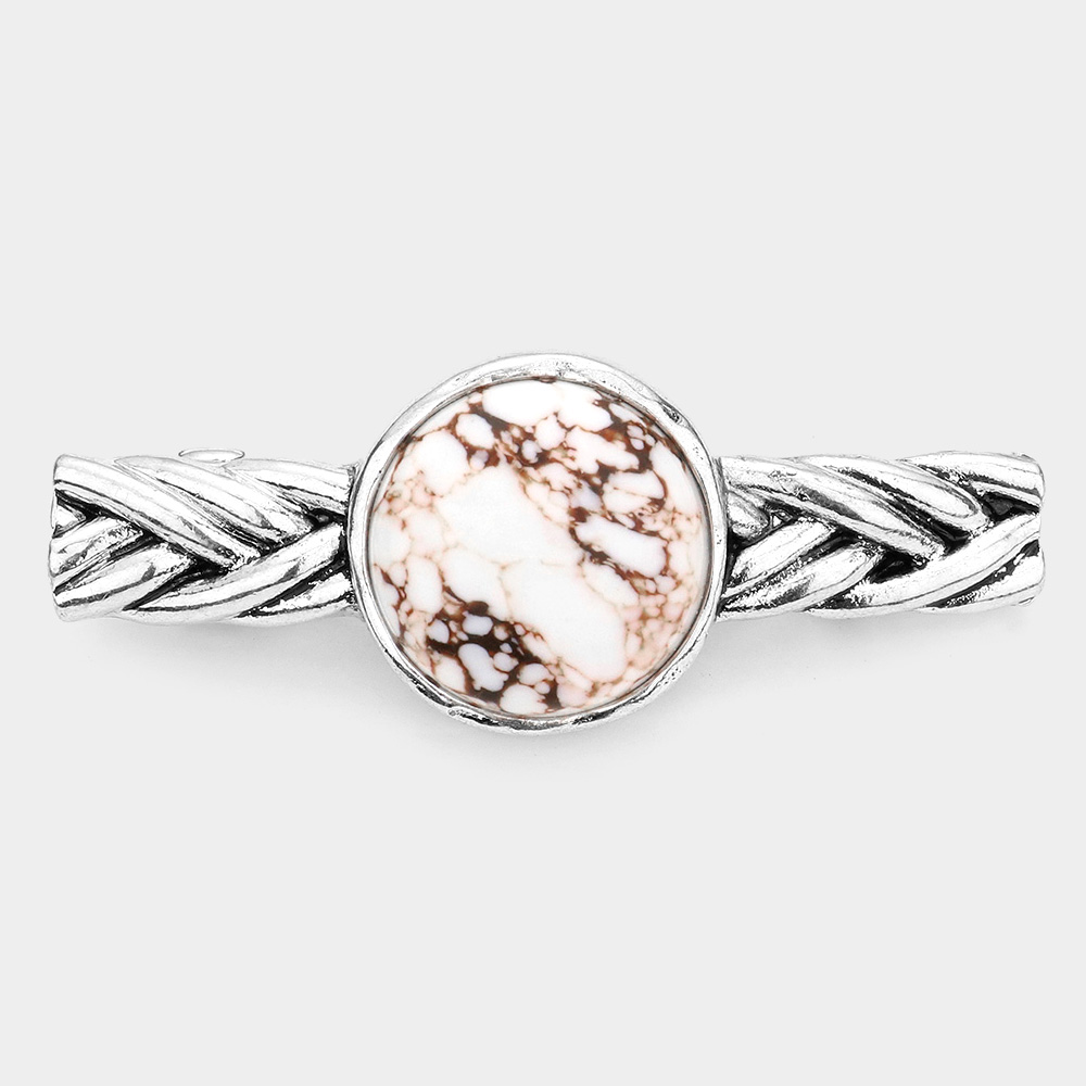 Heart Charm Accent Resin Pebble Beaded Stretch Bracelet