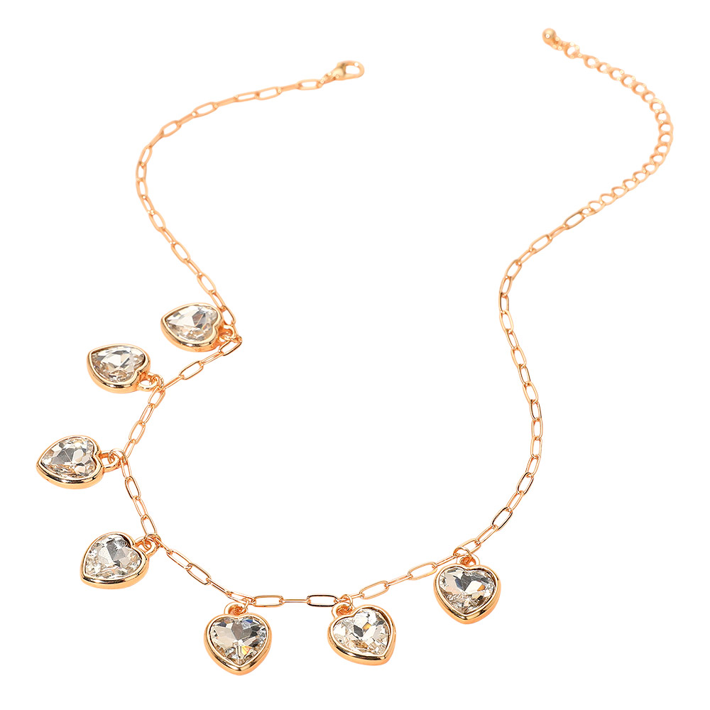 Details • Necklace Size : 16.5" + 3" L • Decor Size : 0.8" L • Elegant chain necklace featuring dangling faceted heart charms that add sparkle and movement to any look. Lightweight, adjustable, and perfect for layering or wearing alone. A chic accessory for gifting or daily wear. • Lead and Nickel Compliant
