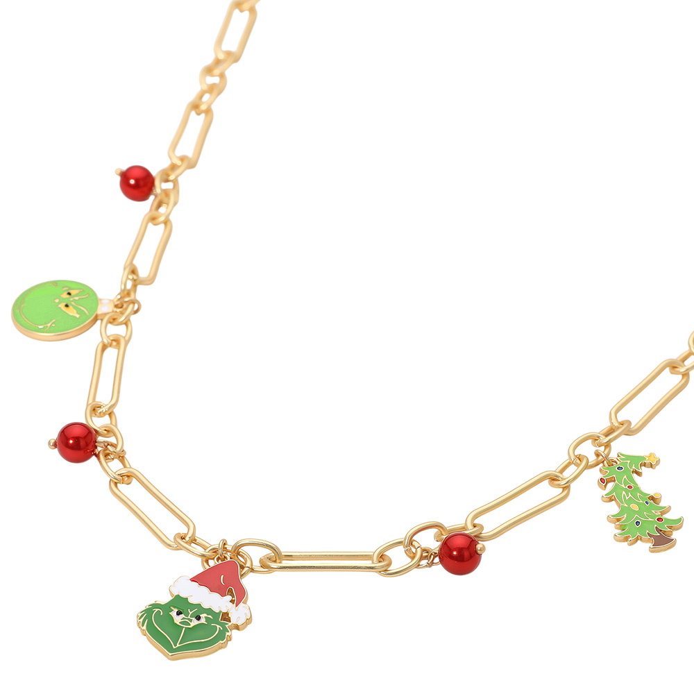 Details • Necklace Size : 18" + 3.5" L • Decor Size : 1.25" L • Celebrate the season in style with this festive charm necklace featuring playful holiday-inspired pendants and bright accents. Its fun and cheerful design makes it the perfect accessory for parties, gatherings, or adding a joyful touch to everyday outfits. • Lead and Nickel Compliant