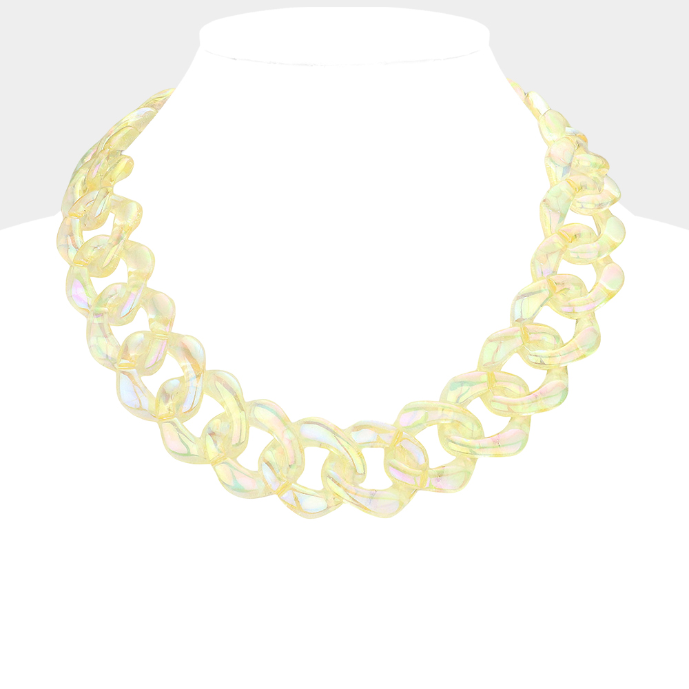 Chunky Marbled Resin Pebble Beaded Statement Necklace