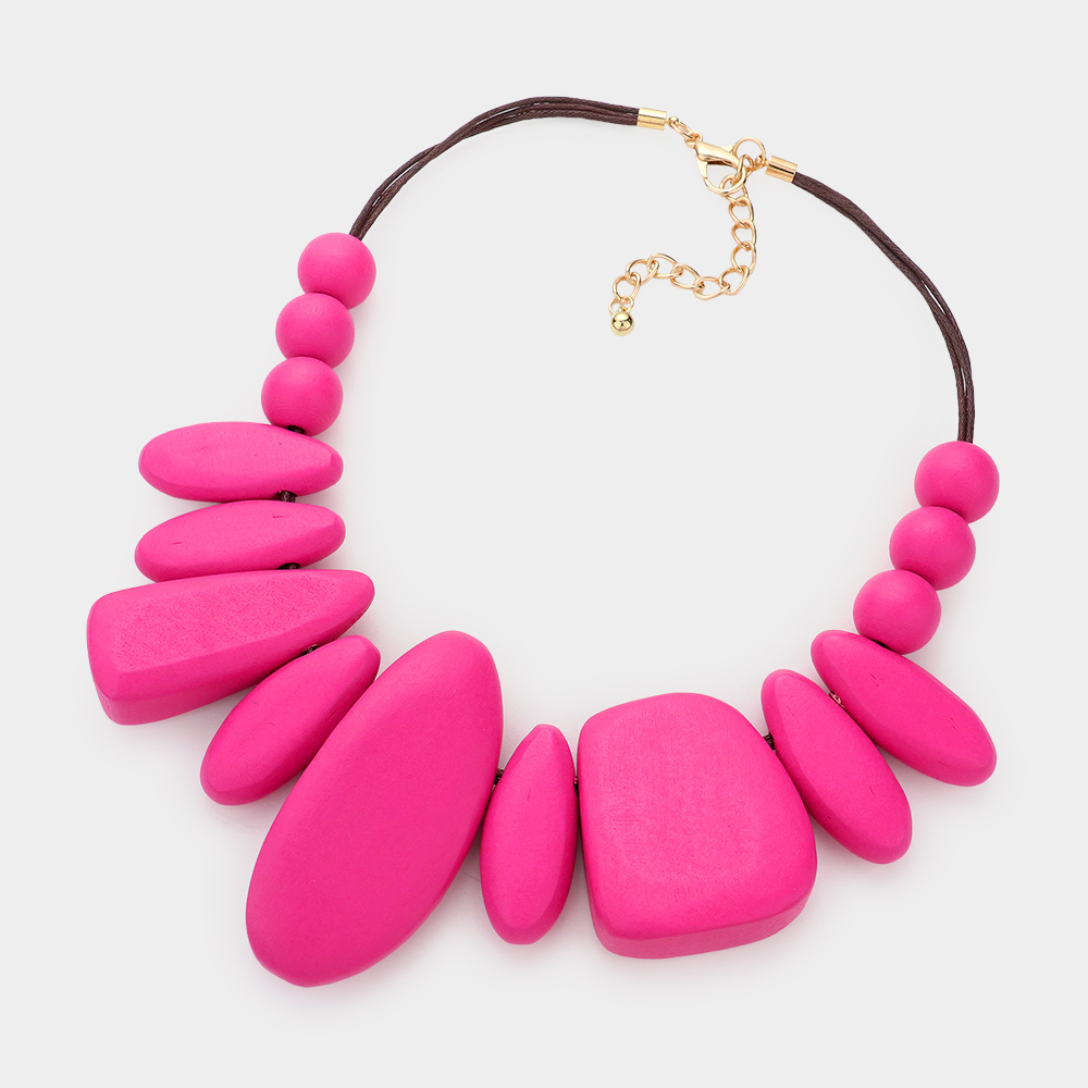 Colored Wood Open Metal Oval Link Triple Layered Necklace
