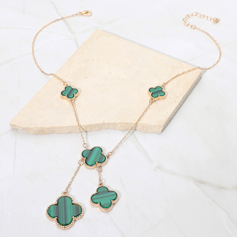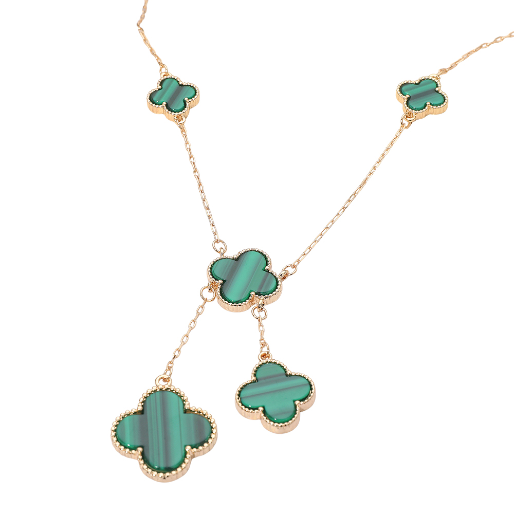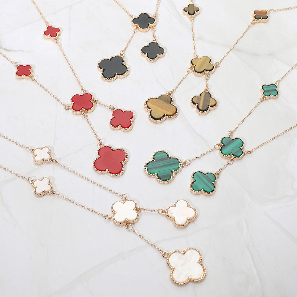 • Stylish necklace featuring multiple quatrefoil pendants in a cascading layered design. The elegant drop detail adds movement and sophistication, making it perfect for both casual and formal wear, offering a timeless charm that enhances any outfit effortlessly.