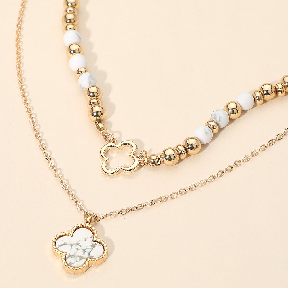 • Elevate your style with a layered quatrefoil pendant necklace featuring adjustable chains and delicate bead details for a refined, modern look. Ideal for wearing solo or stacked, this versatile accessory complements casual outfits, special occasions, and gift giving.