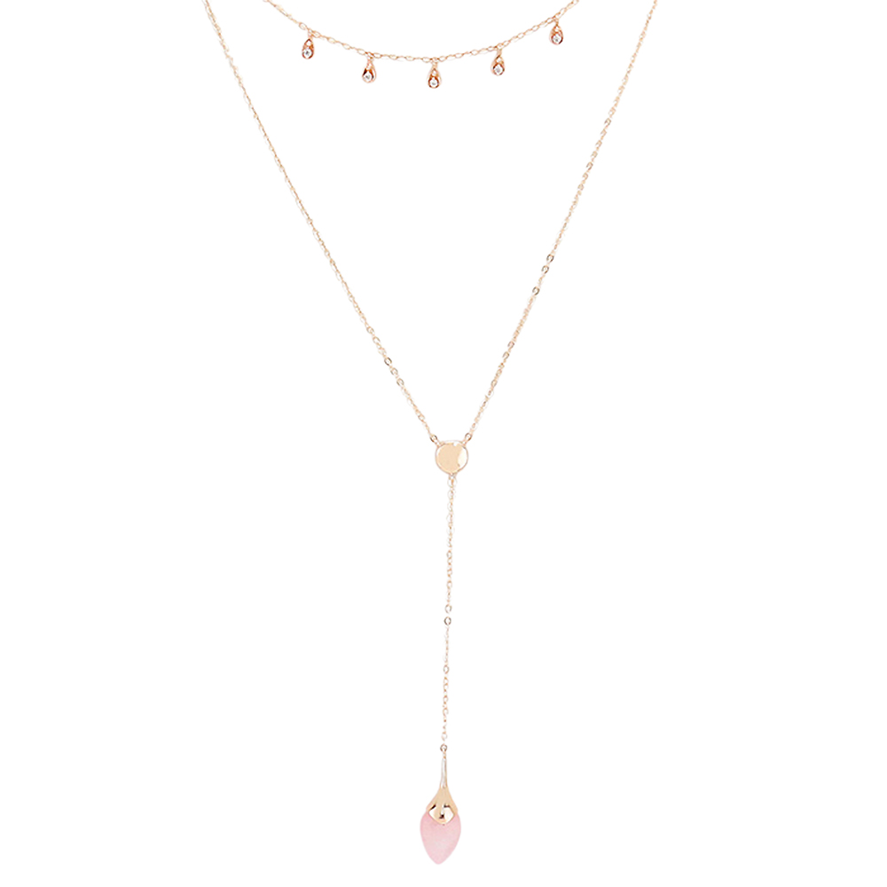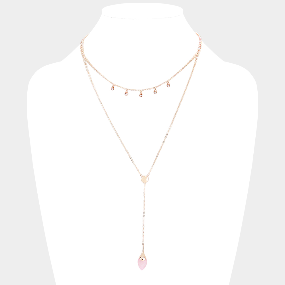 Layered Semi Precious Y Shaped Necklace