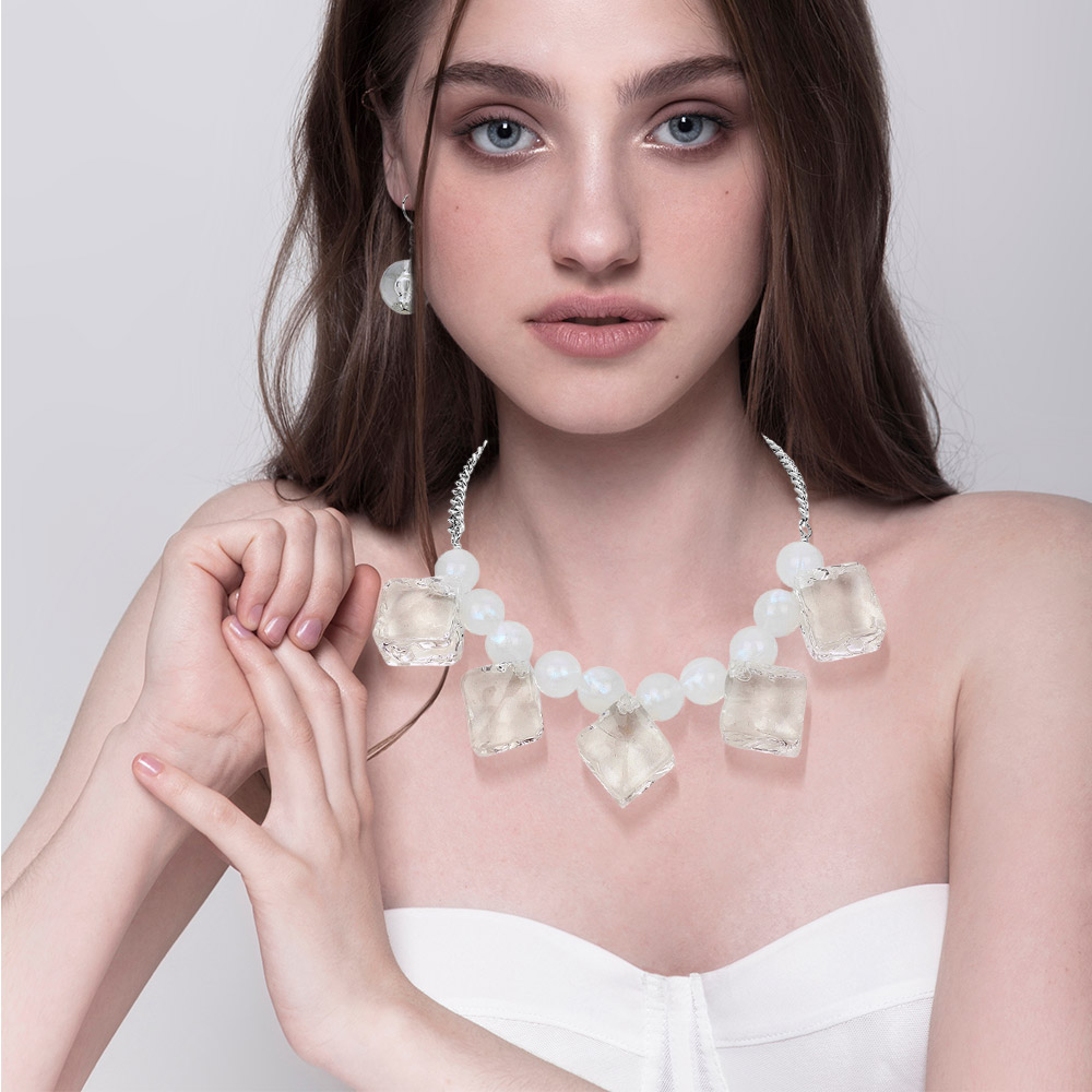 Rhinestone Paved Fringe Necklace Jewelry Set