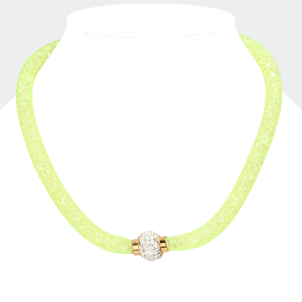 Stone Embellished Colored Metal Rectangle Link Necklace