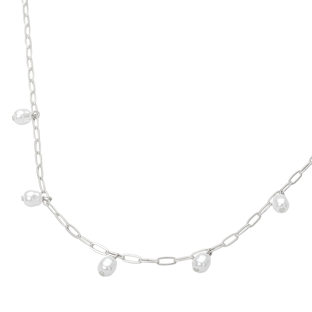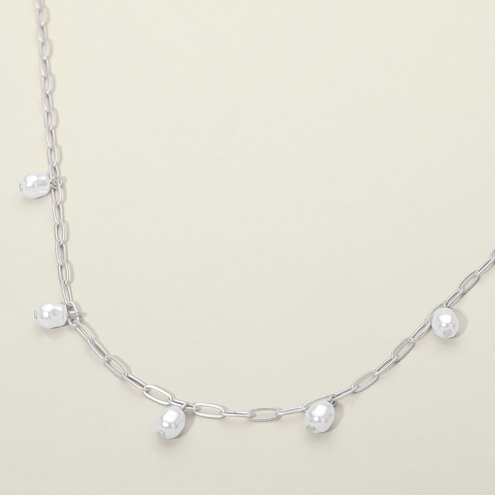 Minimal Pearl Bead Charm Station Paperclip Chain Necklace