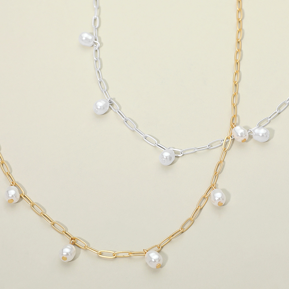 • Delicate chain necklace featuring evenly spaced pearl bead accents for a clean, modern look. Designed to layer easily or wear alone, this understated style adds subtle movement and charm to everyday outfits. A versatile accessory ideal for boutiques seeking timeless, easy-to-style jewelry with broad customer appeal.