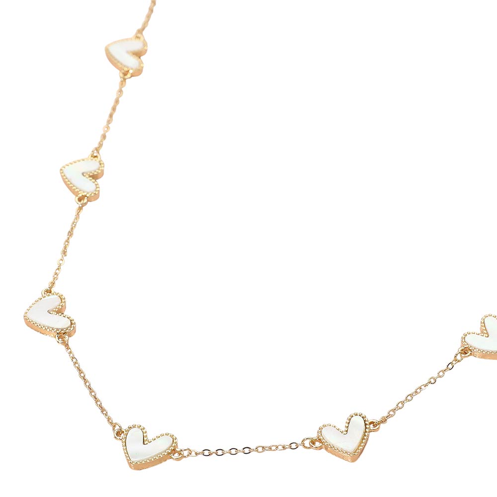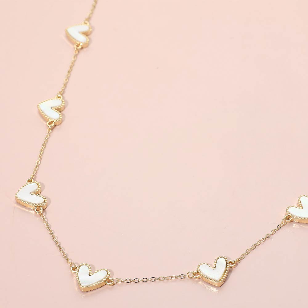 Mother of Pearl Heart Charm Station Necklace Mother of Pearl Heart Charm Station Necklace Mother of Pearl Heart Charm Station Necklace