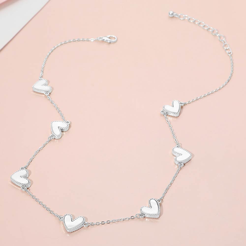 Mother of Pearl Heart Charm Station Necklace Mother of Pearl Heart Charm Station Necklace Mother of Pearl Heart Charm Station Necklace