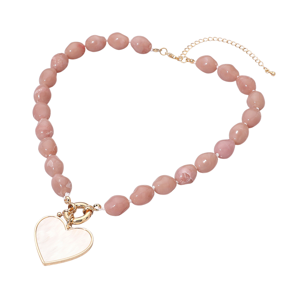 Mother of Pearl Heart Pendant Marbled Pebble Beaded Necklace Mother of Pearl Heart Pendant Marbled Pebble Beaded Necklace