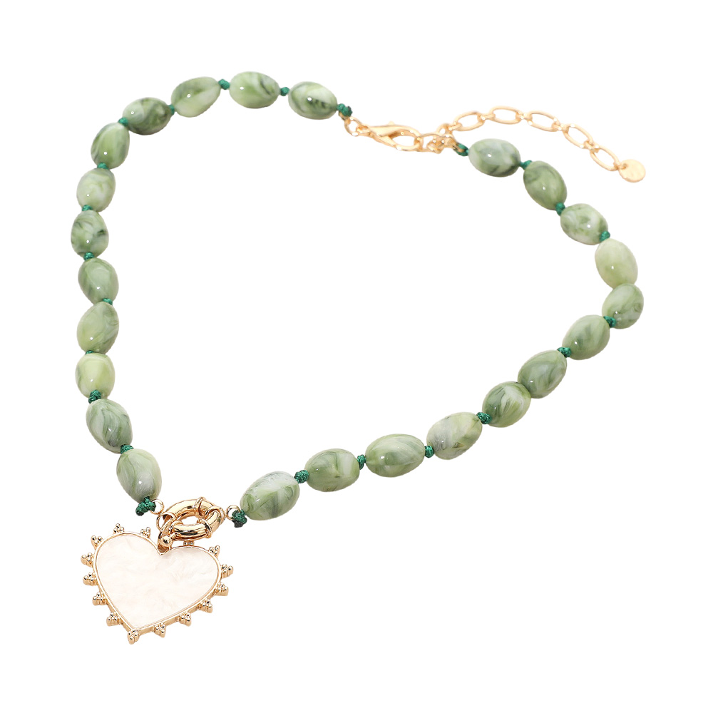 • Elegant beaded necklace designed with marbled beads and a statement heart pendant charm. A fashionable accessory perfect for everyday wear or special occasions, adding romantic charm and a unique finishing touch.