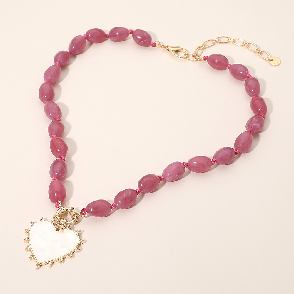 Details • Necklace Size : 20.5" + 4" L • Decor Size : 1.75" L • Elegant beaded necklace designed with marbled beads and a statement heart pendant charm. A fashionable accessory perfect for everyday wear or special occasions, adding romantic charm and a unique finishing touch. • Lead and Nickel Compliant