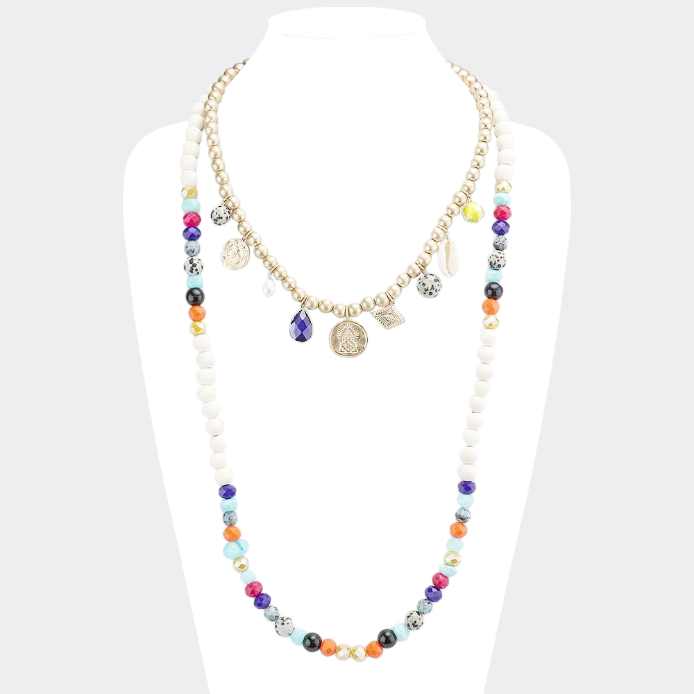 Multi Pendant Semi Precious Wood Ball Necklace