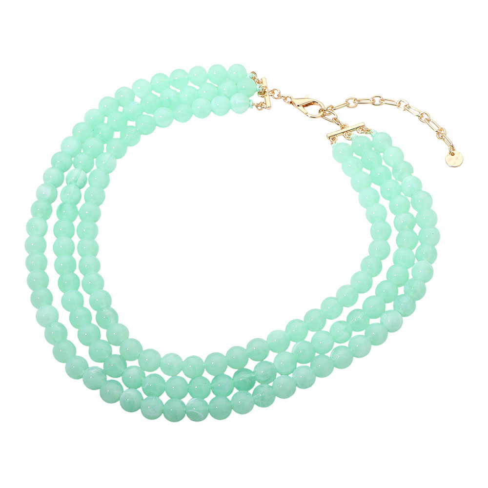 Multi Strand Marbled Resin Ball Beaded Layered Statement Necklace