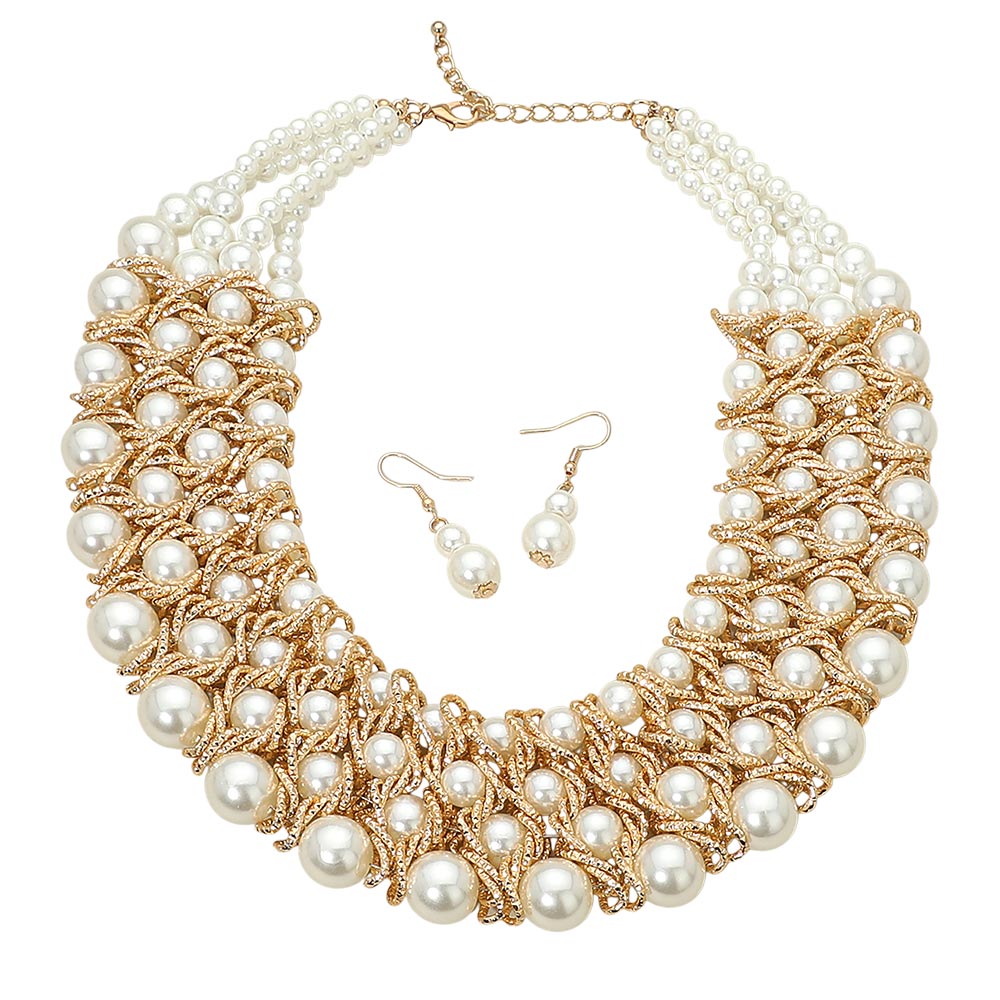 Multi Strand Pearl Collar Statement Necklace