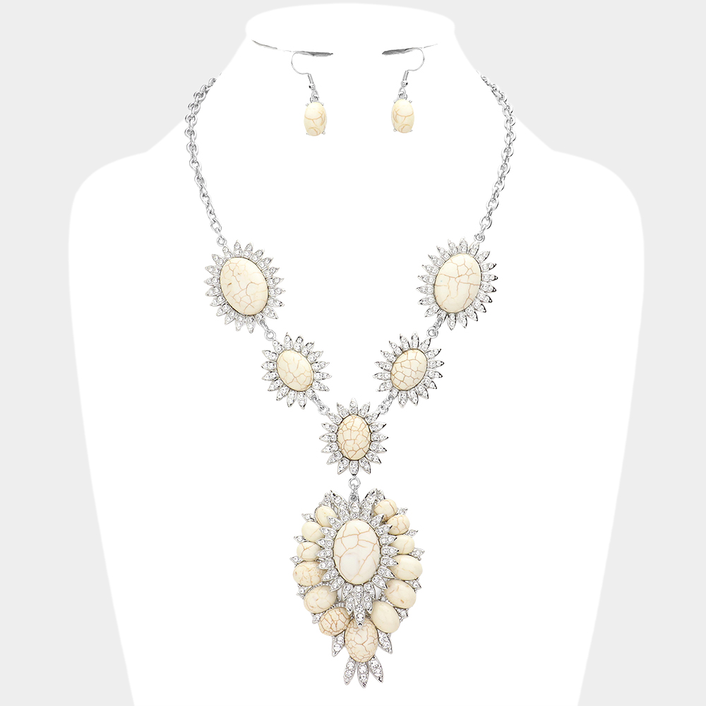 Rhinestone Turquoise Embellished Triple Triangle Link Dangle Earrings