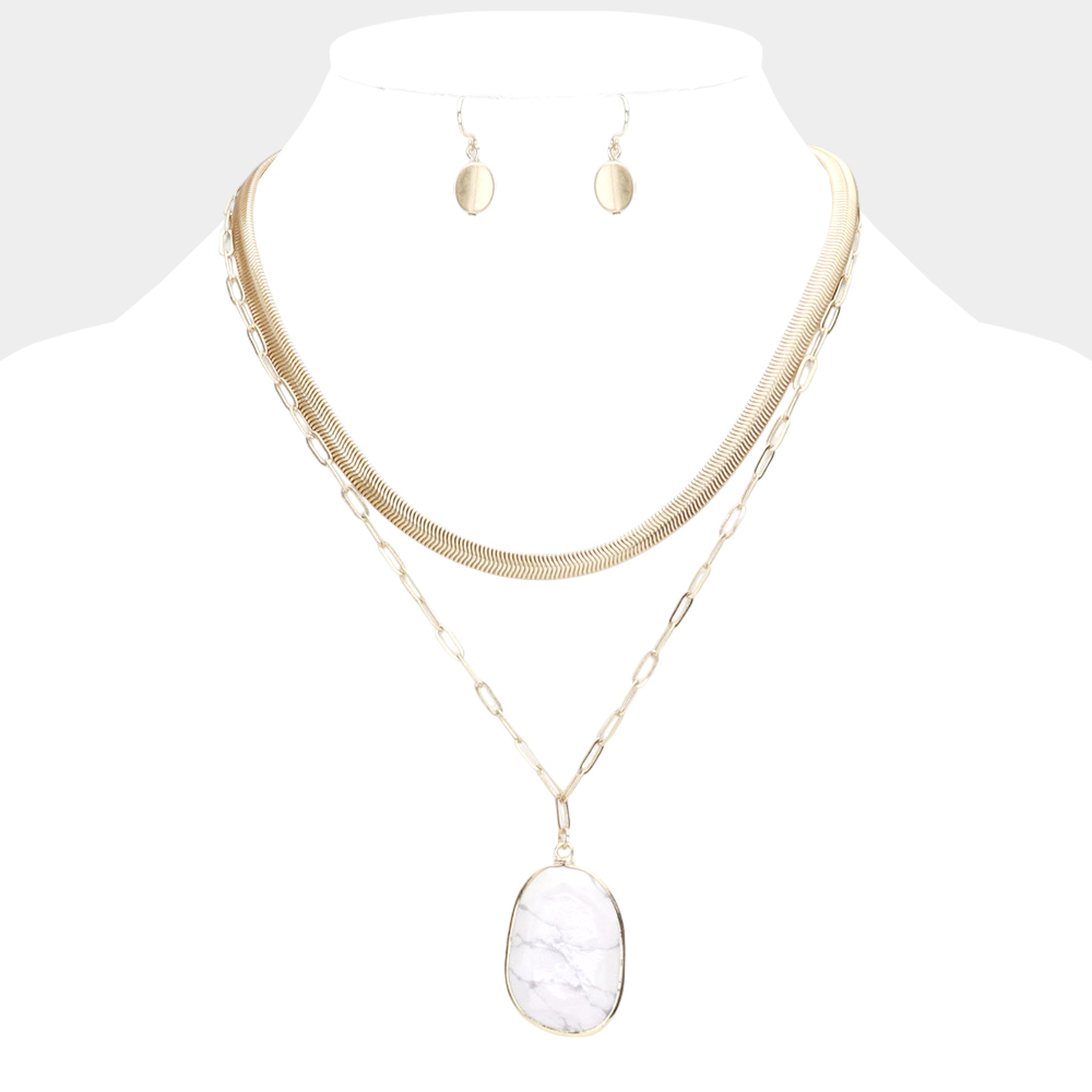 Natural Stone Metal Beaded Teardrop Dangle Earrings