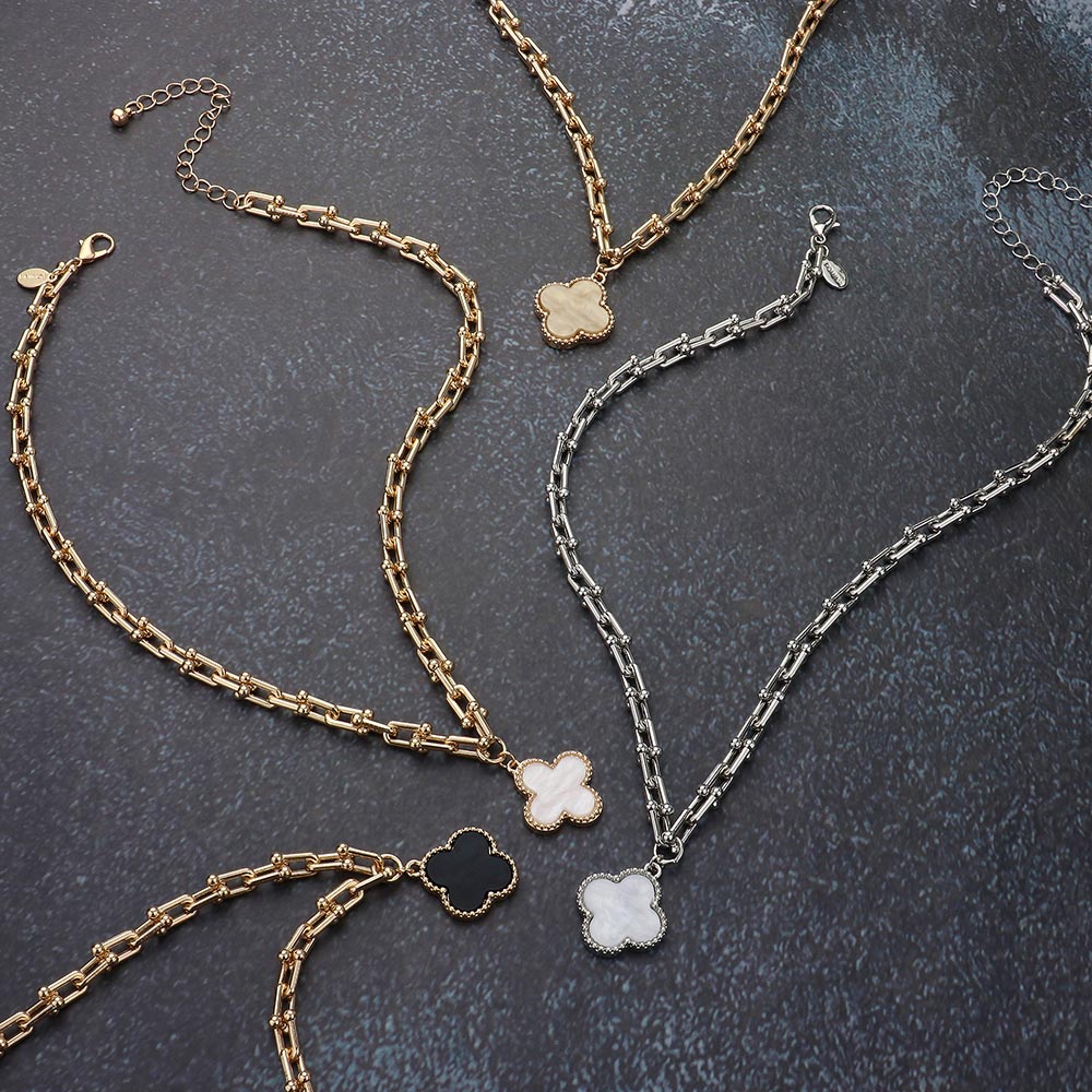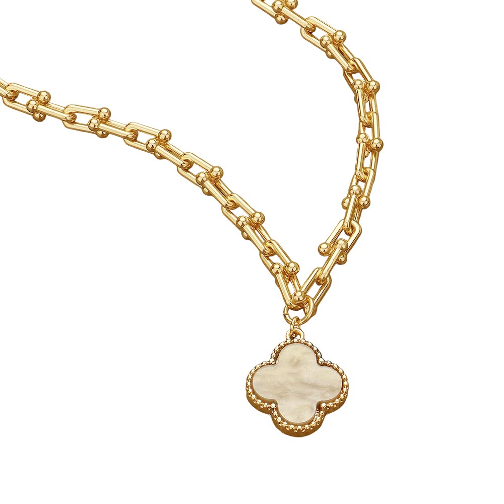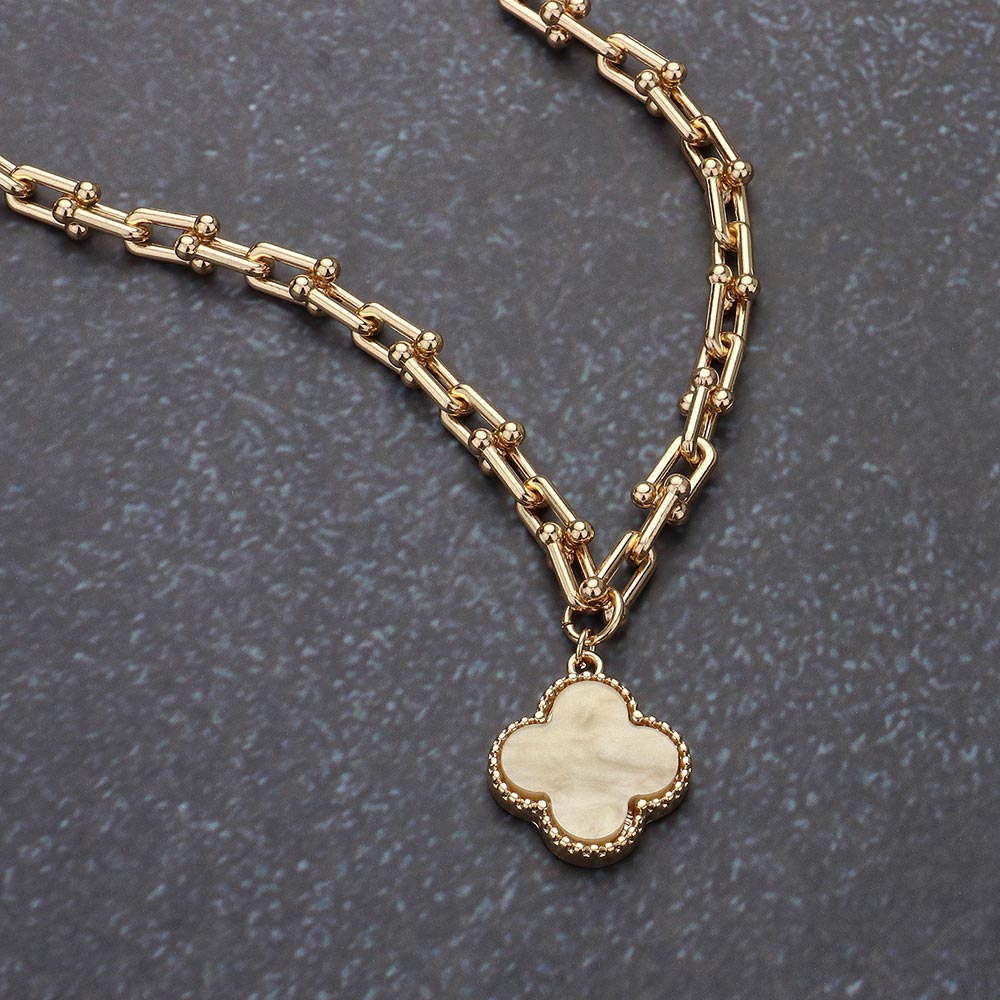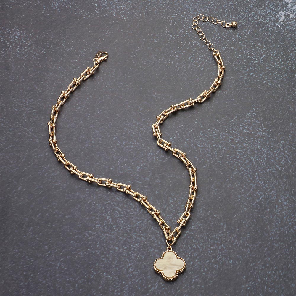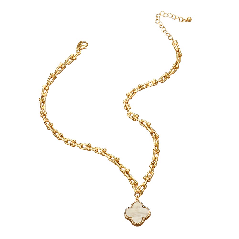 Natural Stone Quatrefoil Pendant Hardware Chain Link Necklace