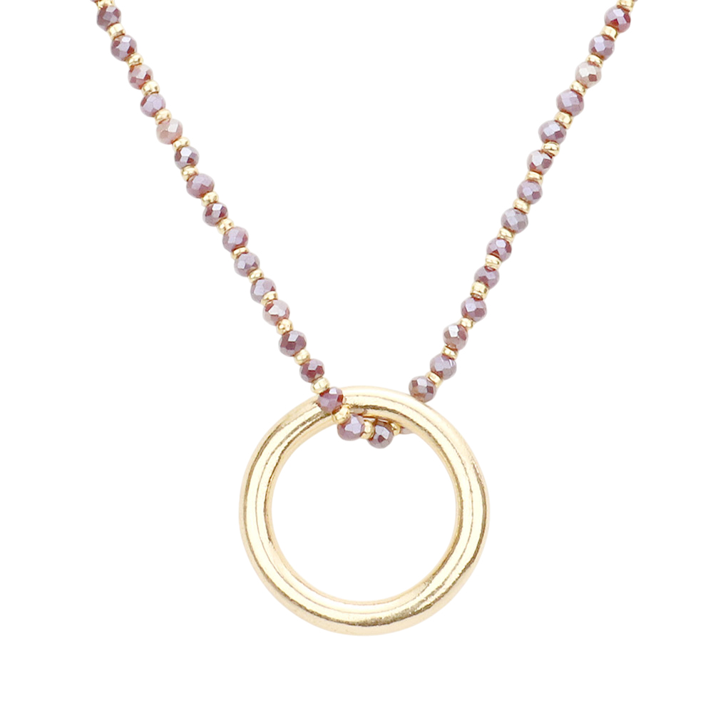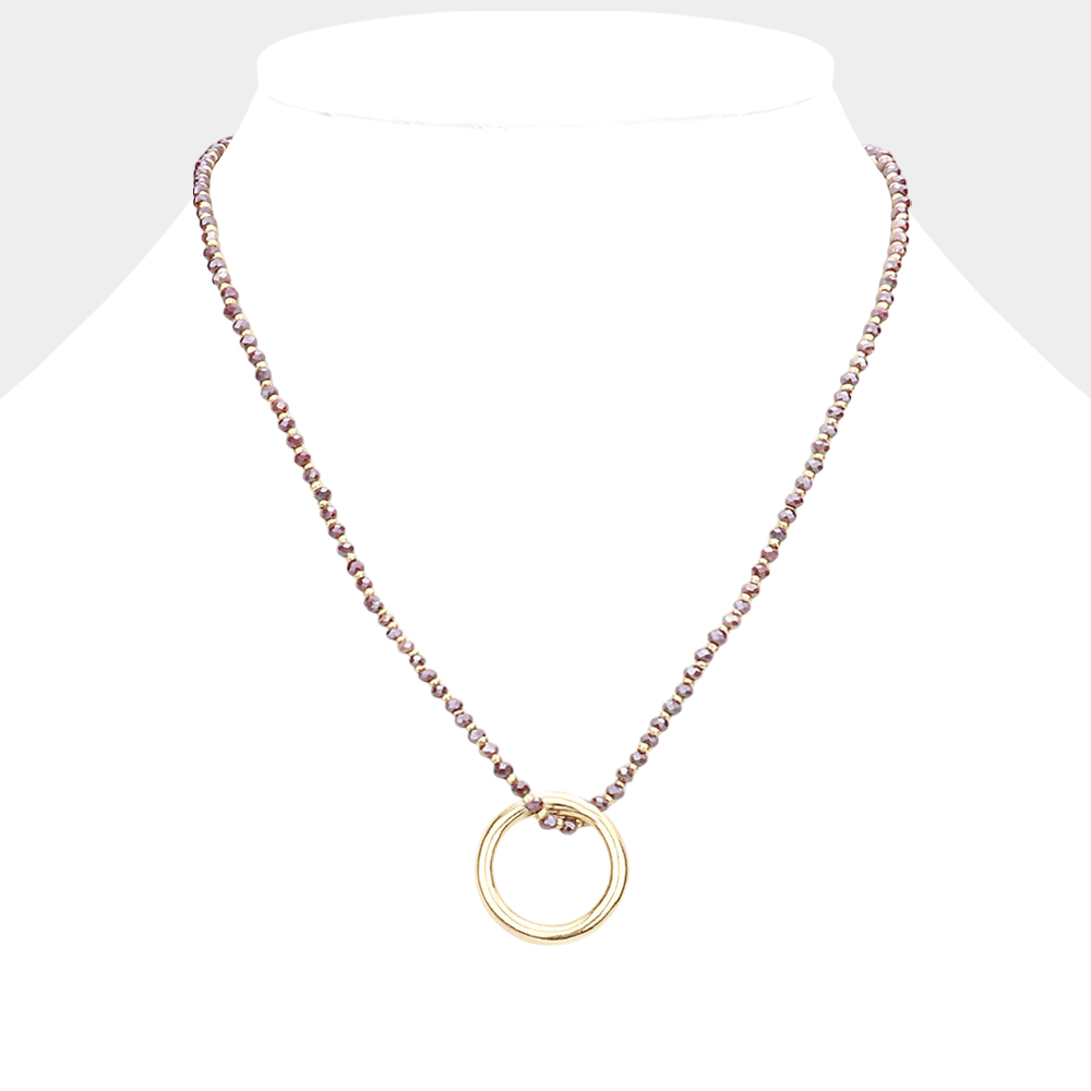 Open Metal Circle Pendant Faceted Beaded Necklace