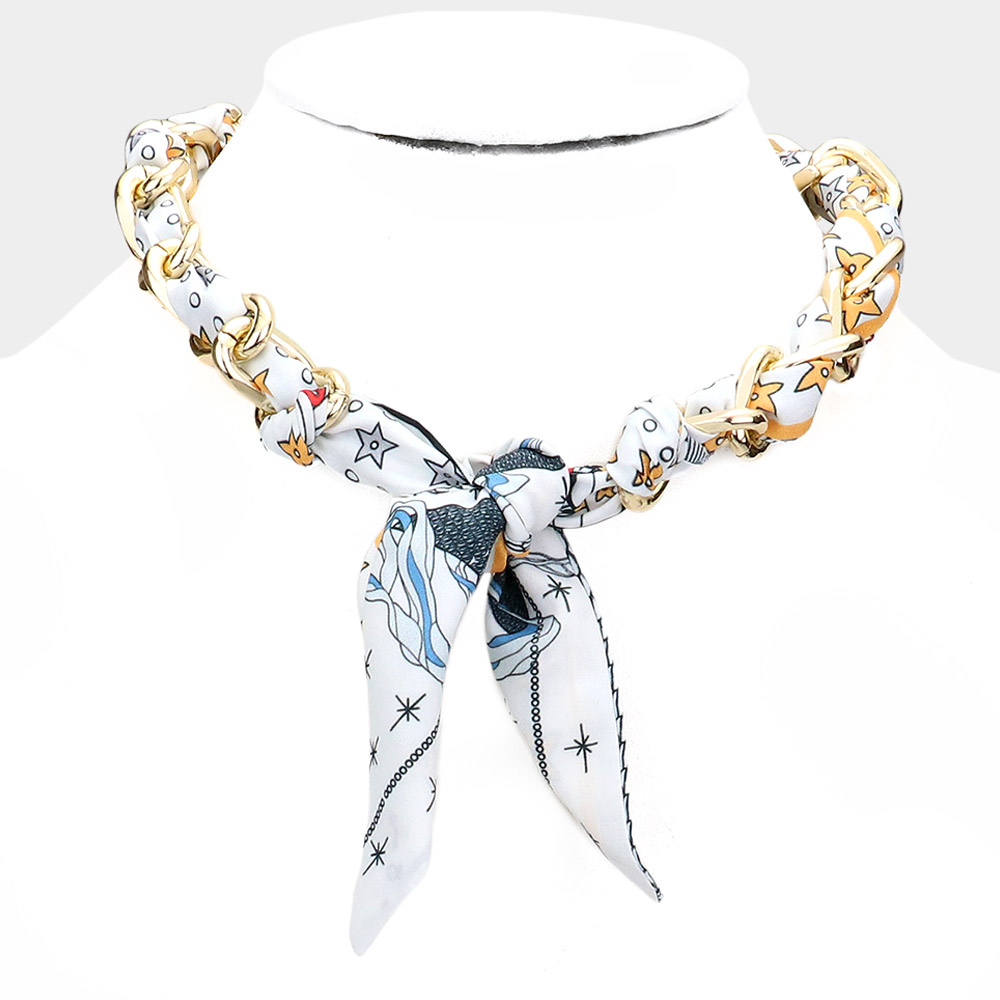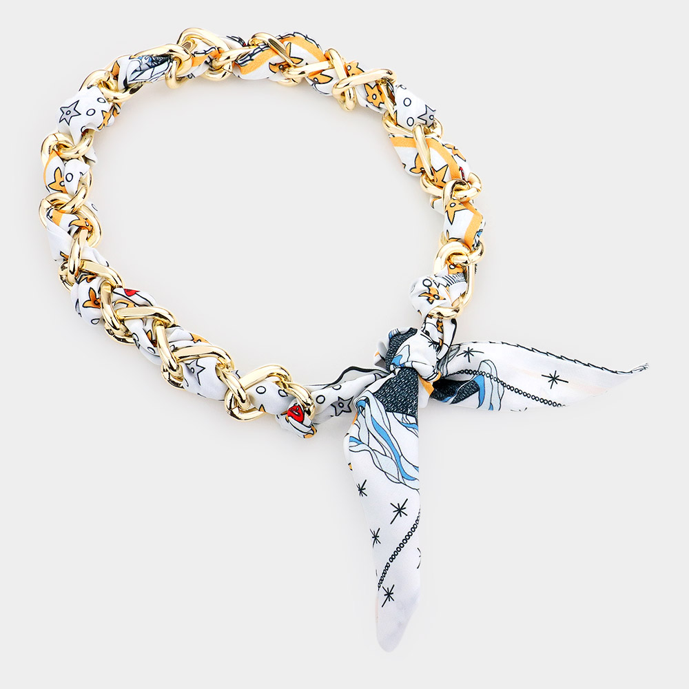 Open Metal Oval Link Starfish Patterned Fabric Necklace