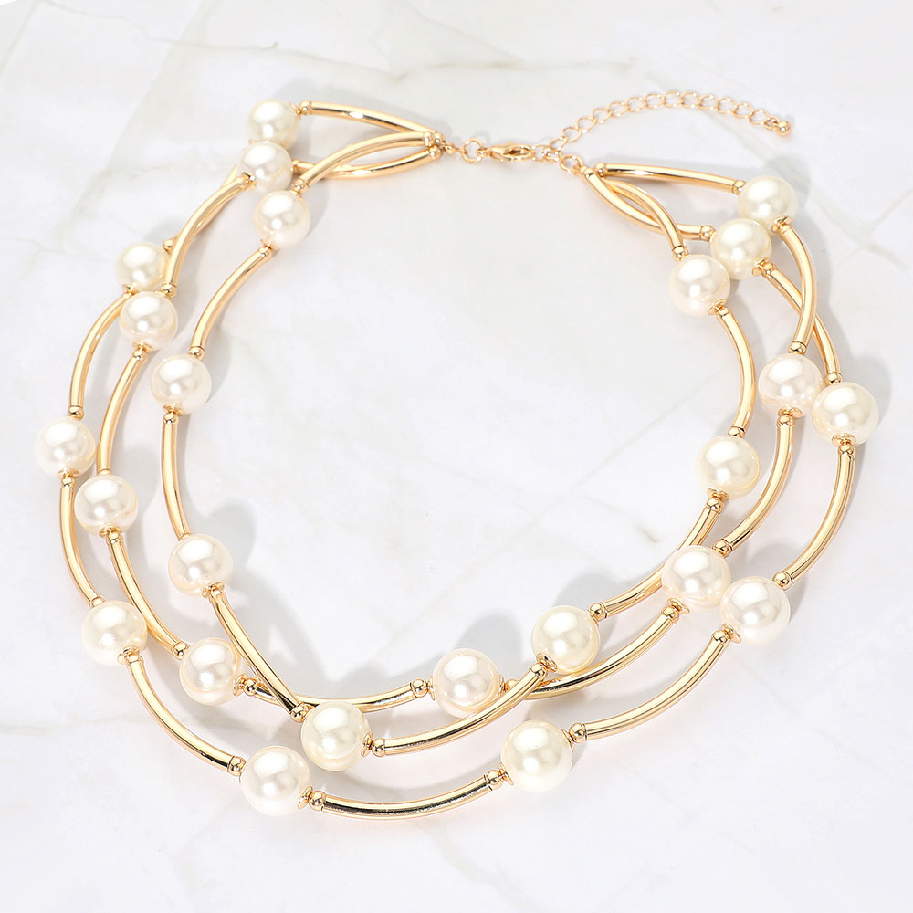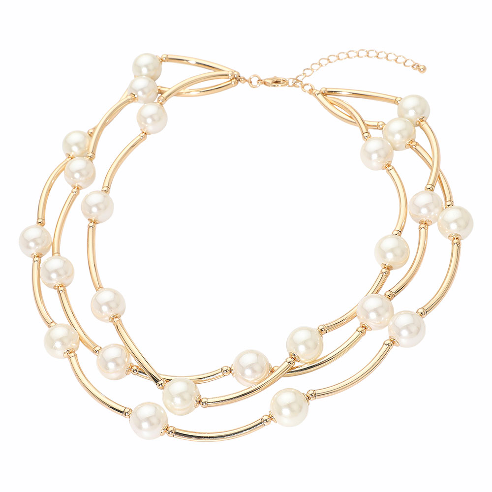 Pearl Ball Metal Bar Beaded Double Strand Necklace Pearl Ball Metal Bar Beaded Double Strand Necklace Pearl Ball Metal Bar Beaded Double Strand Necklace