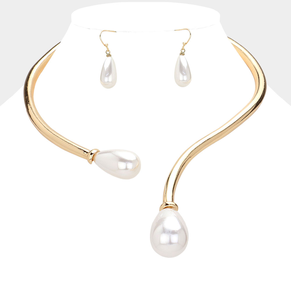 Pearl Centered Bling Studded Oversized Flower Pointed Necklace