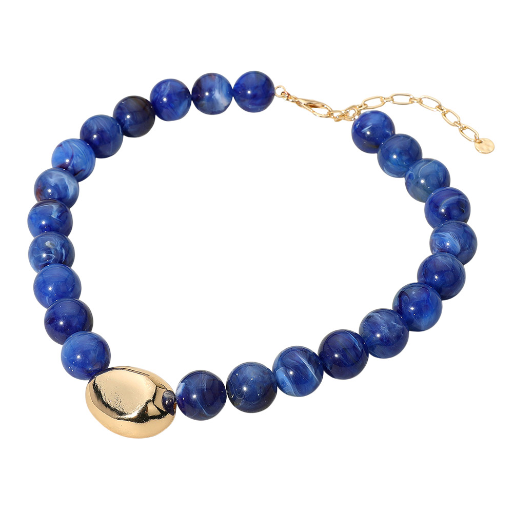 • Make a bold impression with this beaded statement necklace, featuring smooth round beads and a polished metallic accent. Perfect for elevating your style with a touch of artistic flair and modern charm.