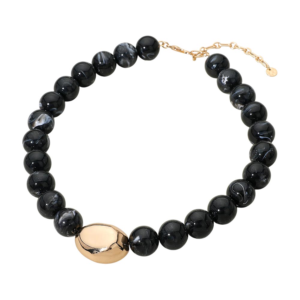 Polished Metal Bean Accent Bold Marbled Ball Beaded Statement Necklace Polished Metal Bean Accent Bold Marbled Ball Beaded Statement Necklace