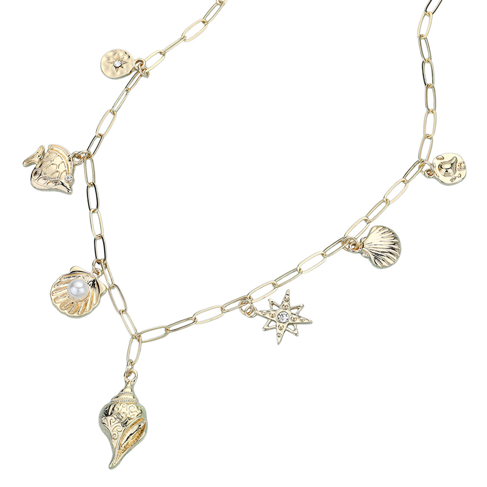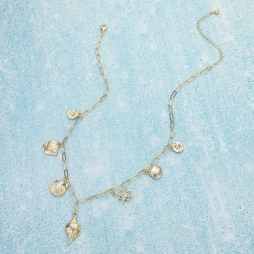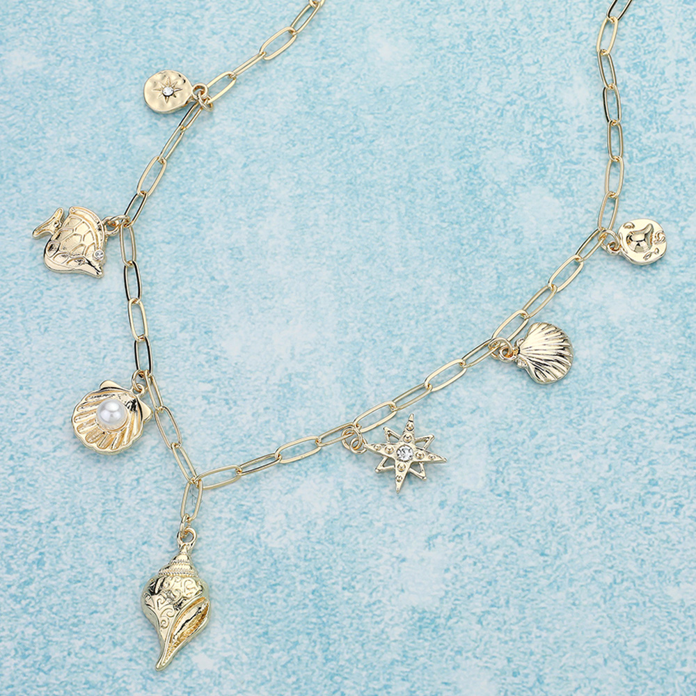 Puka Shell Pearl Shell Star Fish Charm Station Necklace