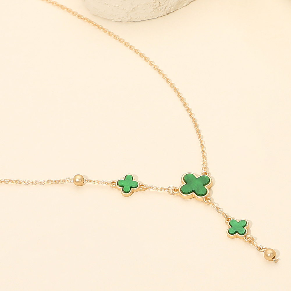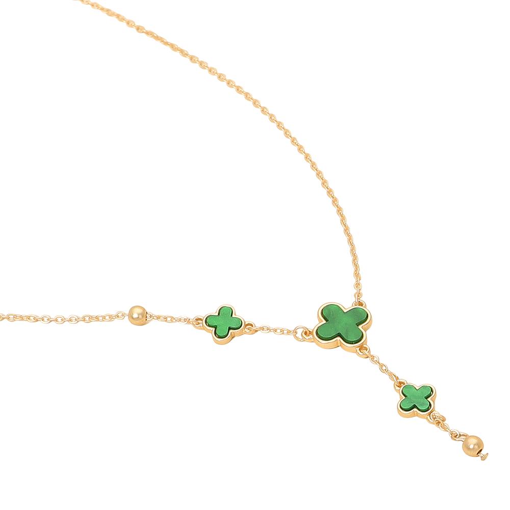 • This elegant quatrefoil charm necklace features a cascading trio of delicate motifs that bring a touch of luck and refinement to any look. Its graceful design adds subtle sophistication, making it perfect for layering or wearing solo as a chic everyday statement.
