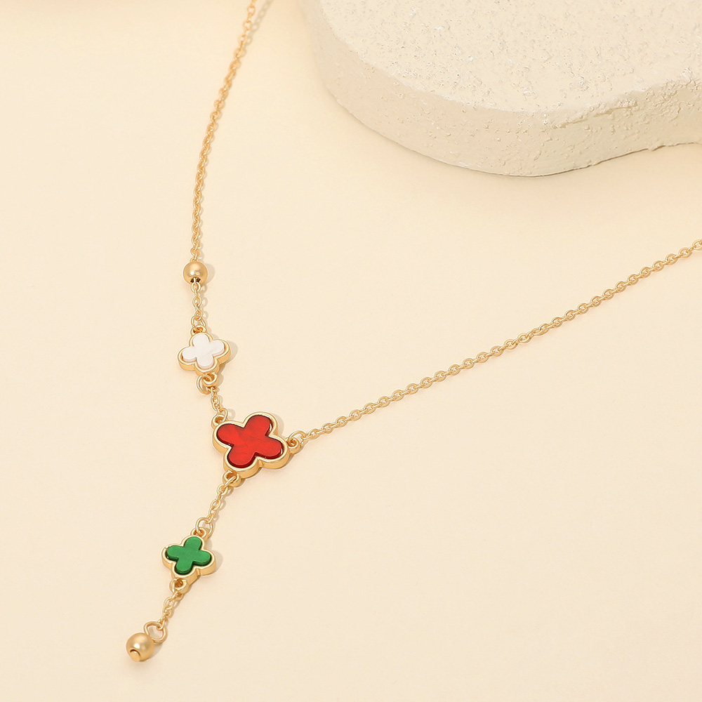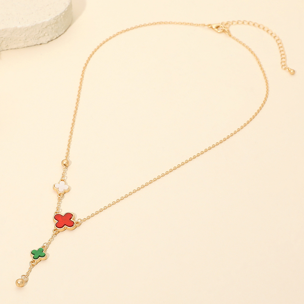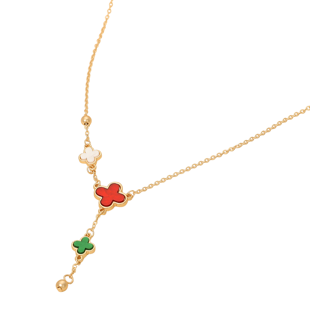 • This elegant quatrefoil charm necklace features a cascading trio of delicate motifs that bring a touch of luck and refinement to any look. Its graceful design adds subtle sophistication, making it perfect for layering or wearing solo as a chic everyday statement.