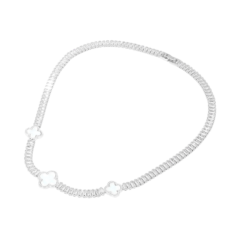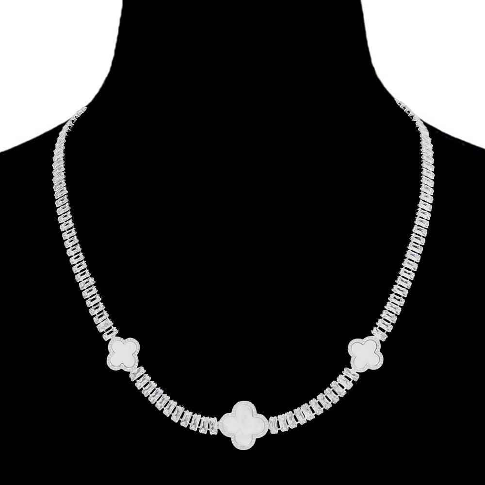 • Elegant station necklace featuring a continuous tennis design accented with quatrefoil motifs for a refined, modern look. Designed to sit beautifully along the neckline, this statement piece elevates everyday outfits and special occasions. Ideal for boutique displays, gift selections, and layered jewelry styling collections.
