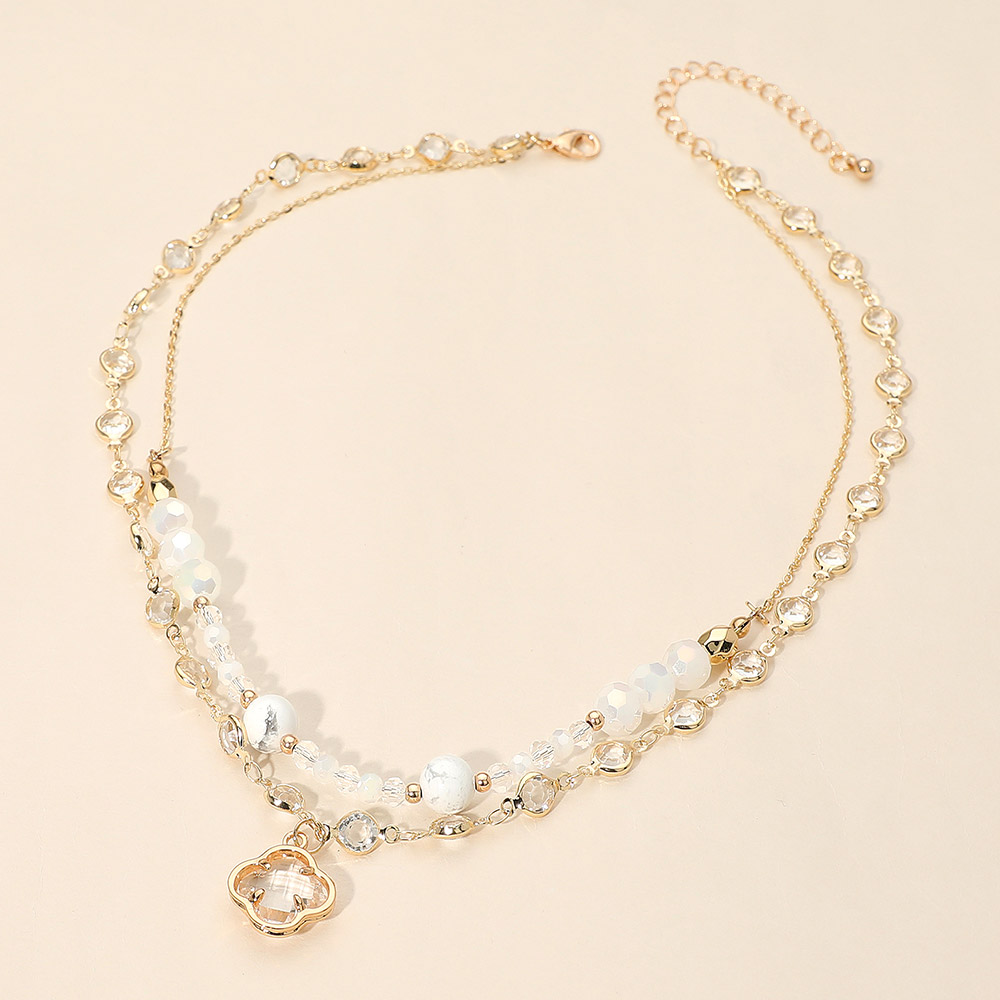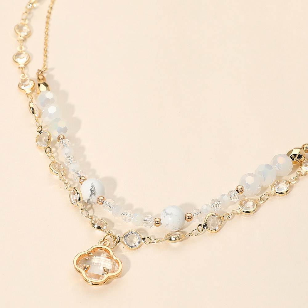 • Stylish dual-layer necklace with intricate bead detailing and a statement quatrefoil pendant for a refined, modern accent. Designed to elevate casual looks or complement evening wear, it layers beautifully with other pieces and makes a thoughtful gift choice for any special occasion.