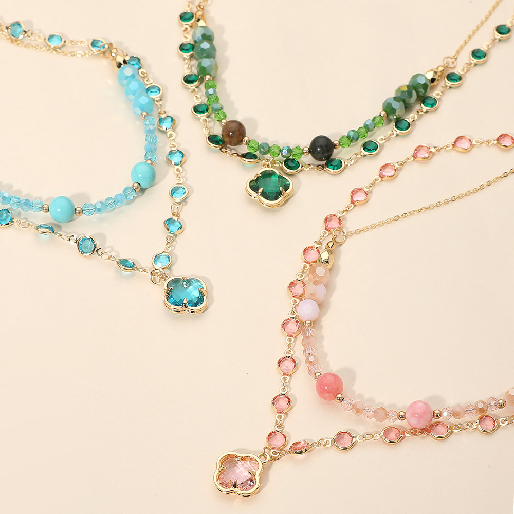 Details • Necklace Size : 16" + 3" L • Decor Size : 3" L • Pendant Size : 0.6" X 0.6" • Stylish dual-layer necklace with intricate bead detailing and a statement quatrefoil pendant for a refined, modern accent. Designed to elevate casual looks or complement evening wear, it layers beautifully with other pieces and makes a thoughtful gift choice for any special occasion. • Lead and Nickel Compliant