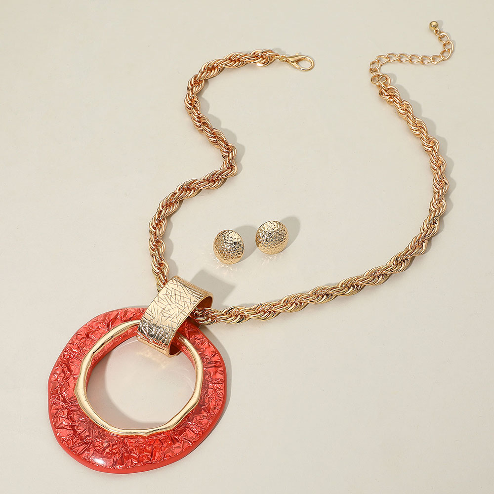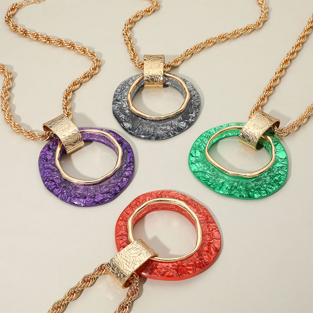 Resin Abstract Ring Pendant Rope Chain Statement Necklace