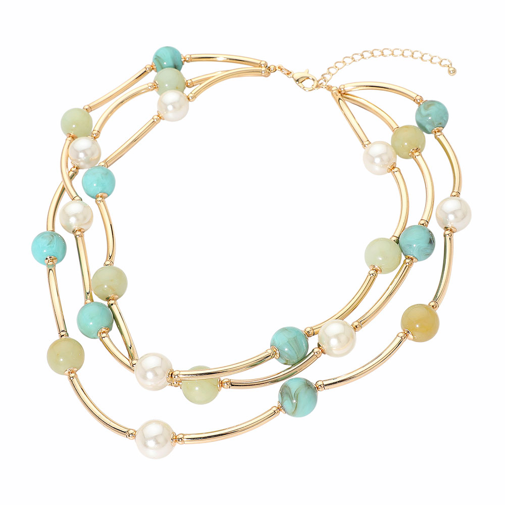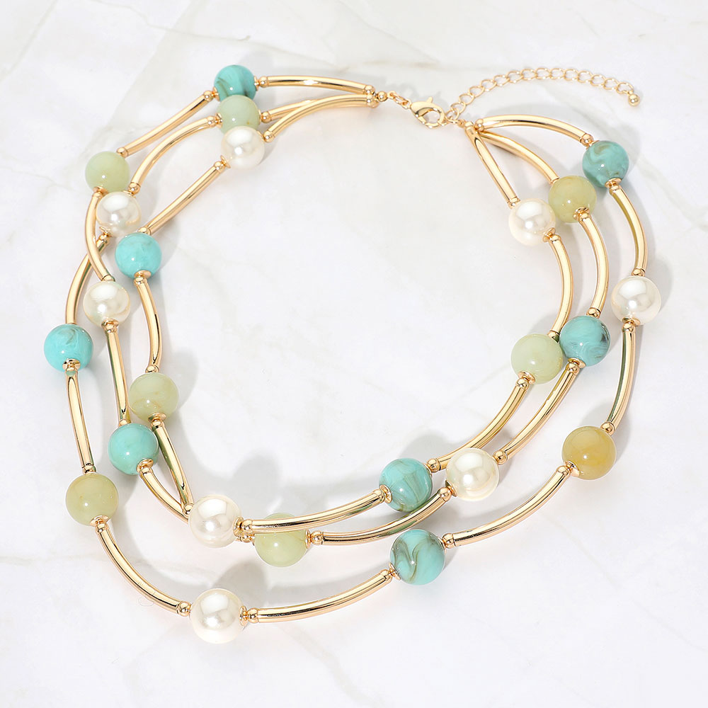 Resin Ball Pearl Metal Bar Beaded Double Strand Necklace Resin Ball Pearl Metal Bar Beaded Double Strand Necklace