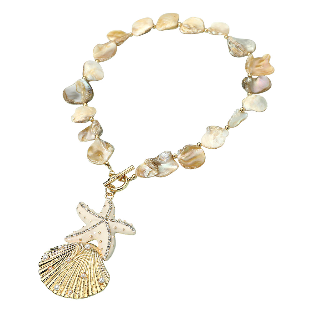 Rhinestone Embellished Starfish Pearl Seashell Pendant Shell Beaded Statement Necklace